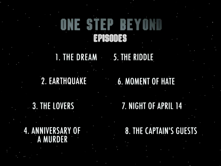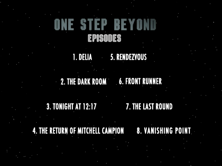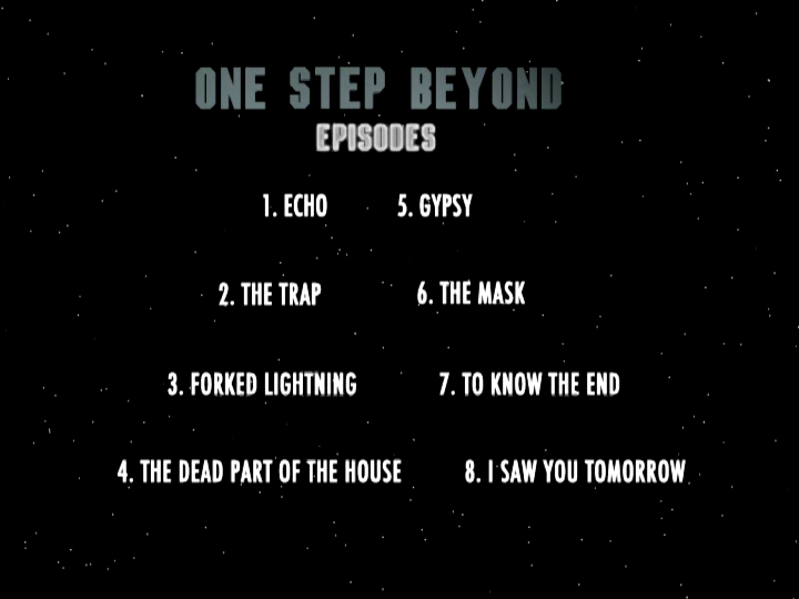 Delta, having been in the business of selling public domain videos for two decades, had already released eleven One Step Beyond DVDs with four episodes each; this particular edition repackaged 24 episodes across two DVDs (one of which is a dual sided disc), with an all new barebones menu per disc. There are no special features, chapter stops, or even trailers for other releases.